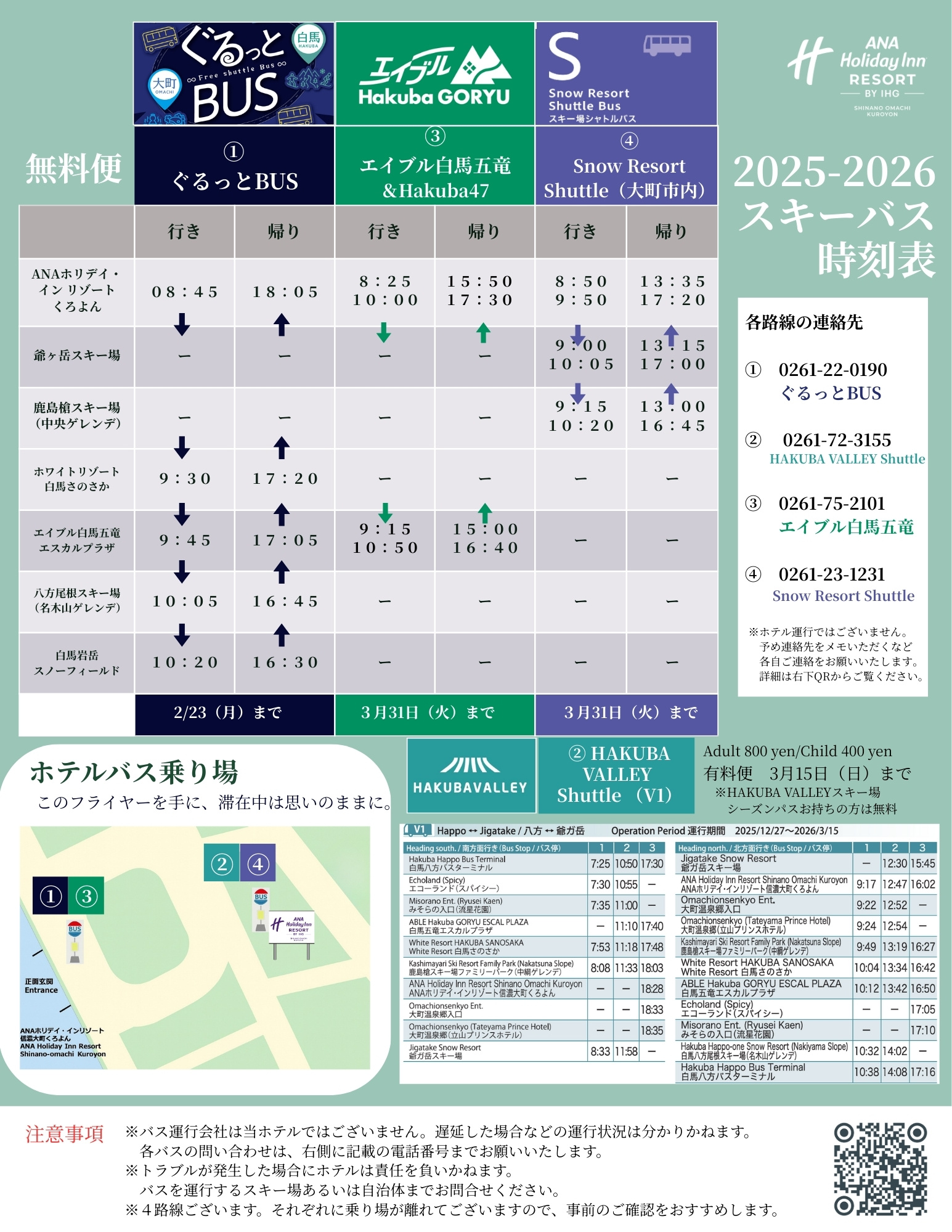 [時刻表]白馬・大町エリアへスキーバスで出発 Free ski bus to 6 snow resorts in Hakuba area